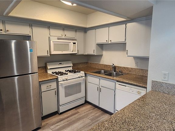 Step into luxury living in this desirable community, just steps from the pool and spa. A spacious, private patio sets the tone for comfort and style. Inside, the chef's kitchen boasts granite countertops, pendant lighting over the breakfast bar, and a new stainless refrigerator. The open living area features new luxury vinyl plank flooring, fresh designer paint, and a cozy fireplace. Bathrooms have been fully renovated with elegant tile showers, sleek vanities, and modern fixtures. Additional upgrades include a newer HVAC system for year-round comfort. A private storage unit adds convenience, while the prime location offers quick access to the 95 freeway, shopping, dining, schools, and parks.