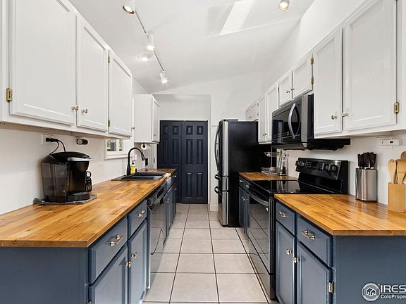 Check out this charming home situated on a spacious corner lot in west Fort Collins with no HOA. The well-manicured property beautifully frames this tastefully finished and functional 4-bed, 2-bath ranch-style home. A primary bathroom is a rare find in this neighborhood, and this home includes that feature. Abundant natural light fills the living room and kitchen. The kitchen has eye catching two-tone cabinets and stunning butcher block countertops, while newer laminate flooring enhances the living room. Outside, large trees provide a lovely canopy over the home and backyard, which features a private courtyard complete with a built-in fire pit. A six-foot wood fence offers additional privacy and seclusion. Conveniently located near the foothills, CSU, Rogers Park, and many other amenities in west Fort Collins, this delightful home is worth a visit. Come by and take a look! Also, check out the 360 degree drone video and 3D tour.