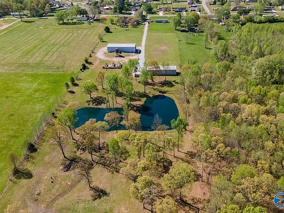 ONE OF A KIND 7.2 +/- acre mini farm with Endless possibilities! This UNRESTRICTED, partially fenced property includes 3/4 bath Tiny home with gas stove, 2 ponds in park like treed setting with concrete pad for a pavilion, two steel beam constructed blgs- aprox. 3000 & 4000 squ ft both with overhead bridge cranes, concrete floors, 13' roll up doors, wood stoves. 2 utility meters and more! Room to build your dream home, hobby farm, homesteading, convert to barndominium, barn or operate a business in! Conveniently located 15 minutes to N Hsv Industrial Park,Toyota Plant, shopping, easy commute to Huntsville, TN & interstate
