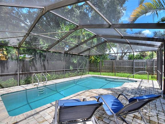 One or more photo(s) has been virtually staged. Pool! 3 Bedrooms! 2 Baths! 2 Car Garage! 1/3 Acre! Updated mid-century home on brick street. Large living room, dining room, plus OFFICE! and a Bonus Room! Kitchen features dining area and stainless steel appliances, an office for your computer, bonus room for an art studio of crafts, garage is approximately 21' x 25' for workshop, woodworking, or mechanical hobbies. Screened pool, covered patio area,, cedar closets in bedrooms. Corner lot with back yard big enough for your gardening aspirations. Close-in location. Small home business allowed. Architectural shingle oof 2011, AC 2022, pool resurfaced 2019, Florida room has double paned sliding doors in 2024, irrigation system covered paver patio, extra attic insulation in 2023, re plumbed with PEX. Fully back yard surrounded with privacy fence. Lovely location close to Drane Park, Dxieland, and Downtown Lakeland.