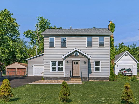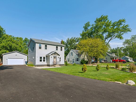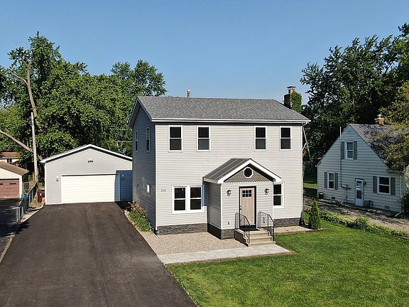 Welcome to this inviting 3 bedroom, 2 bath 2-story home set on a .38-acre property with a huge detached 4 car garage. This beautifully updated and move-in ready home features a charming entryway with vaulted ceilings, new tile floors, and ample closet space. The open floor plan showcases a light-filled living room with updated hardwood flooring, crown molding and baseboards, a bright dining room leading into the newly remodeled kitchen with a breakfast bar, new cabinetry, quartz countertops, stainless steel appliances, and under cabinet lighting. The main level boasts a renovated full bath and a laundry/mudroom leading out to the new composite deck. Upstairs, you'll find 3 generous bedrooms and a full bath, including a spacious primary suite with a separate sitting area and sliding glass doors that open to a private balcony overlooking the property. The detached garage (36'x24') offers ample space for your work truck, workshop, or hosting informal gatherings. 8' Garage Door, 12' ceiling height and 200AMP service in the garage. Outside, the yard features a dog run, a chicken coop, mature trees, and plenty of space to play. Updates to the home include a new expanded driveway, new front door, interior doors, furnace and air conditioner approximately 4 years old, appliances, new sump pump, light fixtures, recessed lighting, freshly painted interior and new carpet just weeks ago. Located in desirable central, unincorporated New Lenox, close to Lowell Park, Lions Park, Old Plank Road Trail, award winning Lincoln-Way schools, Silver Cross Hospital, Metra and convenient access to I80 and 355. Property taxes do not reflect a homeowners exemption.