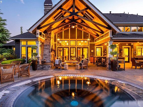 Grandeur in Stonehenge: a former Street of Dreams Winner! This home is a must see! A rare find with small acreage tucked inside this coveted private neighborhood of estate homes. Guest home on property! Master on the main floor, a true chefs/bakers/caterers kitchen & wide open space; two level family room, morning room w/ views! The grounds provide a perfect canvas for entertaining: water feature that is a hot tub, outdoor lounge, fplce! Fruit trees, raised garden beds and a Taj Ma-coup! A 10!