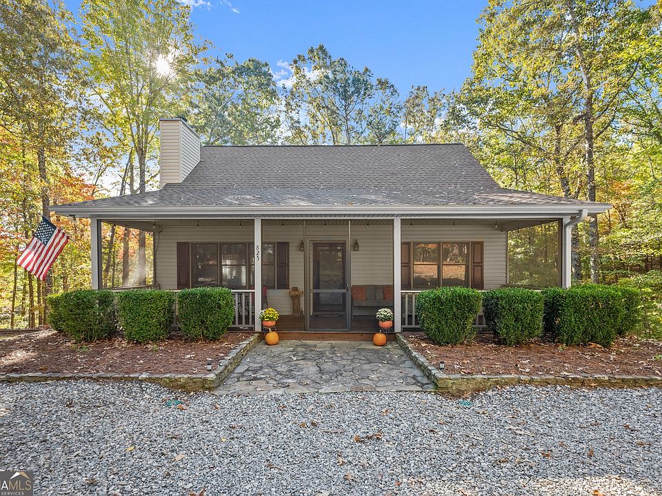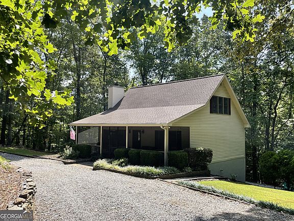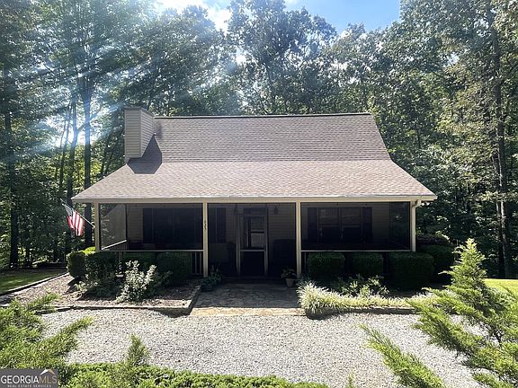 Charming Country Retreat Nestled on approximately 2.07 wooded acres with walking trails, this inviting 3 bedroom, 3 bath home with flex space offers the perfect blend of comfort and nature. Step inside to an open-concept living area with vaulted ceilings, a stunning rock fireplace with gas logs, and gleaming hardwood floors. The kitchen boasts granite countertops, solid wood cabinetry, and ample storage, opening to a huge deck overlooking the forest-ideal for entertaining or quiet evenings surrounded by nature. Enjoy your morning coffee on the screened front porch, or explore the abundance of wildlife right in your backyard. A circular drive, storage building, and thoughtful design make daily living easy and convenient. The full finished basement provides endless possibilities-whether you dream of a movie room, game room, or additional flex space. Located just minutes from Cleveland, Helen, and Clarkesville, this property offers both tranquility and accessibility. Beautiful setting, abundant privacy, and true country charm.