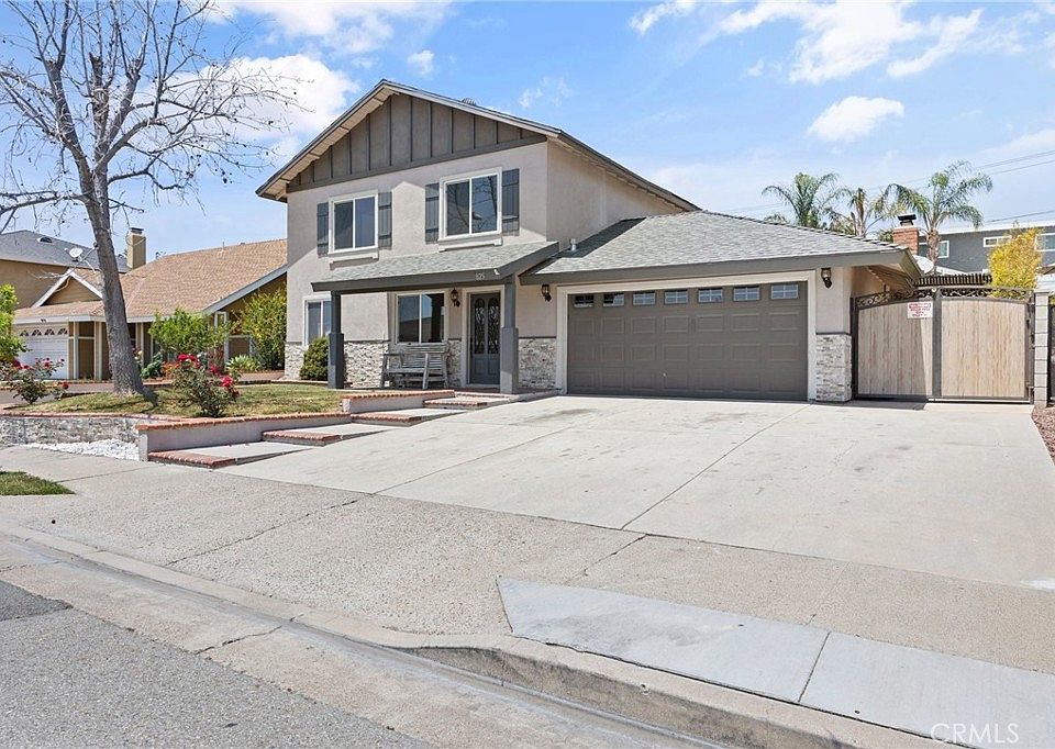 Beautiful pool home in a cul-de-sac. No HOA! It features 5 bedrooms, 2 baths and a bonus restroom and shower outdoor for pool guests. Formal living room is next to an extra room that can easily be your home office. Downstairs bedroom with backyard access. Spacious kitchen with freshly painted cabinets, brand new stove and dishwasher, granite countertops with big center island. Kitchen leads to the family room with fireplace and dining area that opens up to your gorgeous backyard! Great outdoor space for all your gatherings. Spectacular pool with slide and grotto jacuzzi with waterfalls is an absolute entertainer's dream. Brand new salt water pool system and heater. The second floor features 3 bedrooms with large den that opens up to a big balcony overlooking the backyard. Brand new carpet and flooring. 2 car garage with a big driveway for extra parking. On the other side of the home is an extra long driveway that allows tandem or RV parking. 2 side gates for backyard access. Highly rated school. Trail, mall, gym, Target and restaurants nearby. Close to the freeway, parks and minutes away from downtown Brea! This home has so many great potential.