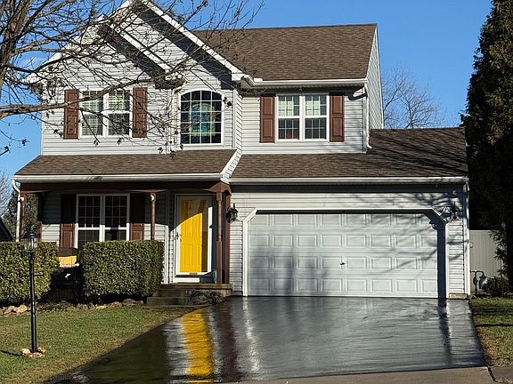 Owner is the listing agent. This home is move in ready. New furnace and AC units were installed in 2024. New sump pump was installed in 2024. The 80-gallon water heater has been replaced. The roof has been replaced. Brand New carpet. Interior has been freshly painted. GloFiber fiber optic installed. The kitchen and dining area are extra-large with lots of countertop space and Cherry cabinets. The living room has a beautiful gas fireplace with slate surround and mantle. The entire first floor is open and perfect for entertaining. The primary bath has a large soaking tub and separate shower. The basement is finished with vinyl plank flooring, it also has a laundry area with sink and extra storage. The private, fenced back yard has gardens and a large, covered patio. The back yard is currently being re-seeded for a new lush lawn. Large round area of yard has been leveled and can be useful in many ways. The shed is a nice addition to free up space in the garage, it's great for lawn equipment, bikes, etc... The yard backs to the 1-mile paved trail that wraps around the community leading to the playground, tot lot, huge open field, basketball court and picnic pavilion.