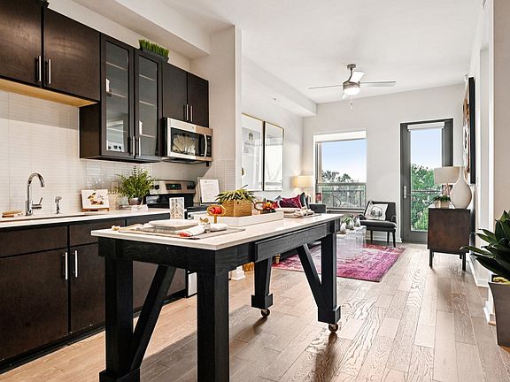 - Exterior features: Balcony, Conference Room, Custom Closets with Wood Shelving, Custom Glass-Front Cabinetry, Dry Cleaning Service, Flooring: Wood, Frameless Showers with Bench Seating *, French Door Refrigerators, Library/Lounge, Pet Washing Station, Pet-Friendly Community, Quartz Countertops with Trough Sinks, Saflok Electronic Locking System, Spacious Floor Plans with 10ft. Ceilings, Stainless Steel Appliances, Storybook Windows, TV Lounge, View Type: Breathtaking Cityscape Views, Wine Chillers *, Yoga/Spin (with Fitness on Demand)