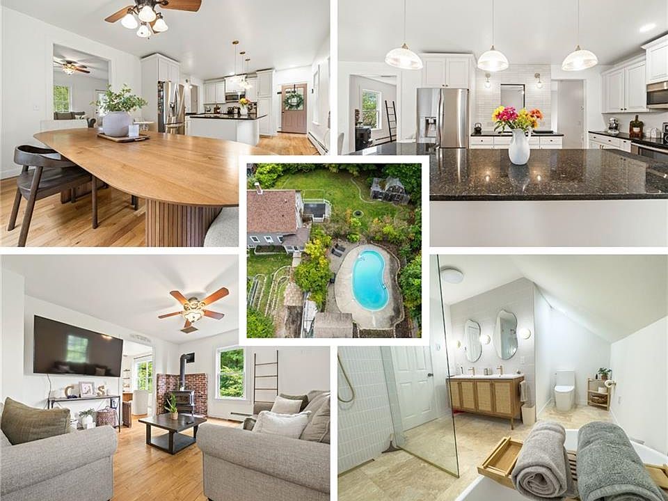 Discover the perfect blend of vintage character and modern touches in this beautifully renovated Colonial. With spacious living areas, modern updates, a deep inground pool with pool house, and more, this home is designed for comfortable everyday living and effortless entertaining. The open concept main level seamlessly connects the modern kitchen, dining area, and cozy living room with a wood stove, creating a warm and inviting environment. The kitchen shines with an oversized island, granite countertops, cream cabinetry, and stainless steel appliances—an ideal space for both cooking and gathering. A spacious bonus room with an ensuite bath opens directly to the backyard deck, extending the living space outdoors. Upstairs, you’ll find three bedrooms, or the option of two plus a convenient laundry room, along with a beautifully renovated spa-like bathroom that is a true retreat. A generous hallway landing adds flexibility and charm to the second level. The lower level offers a complete two-bedroom in-law suite with its own entrance, kitchen, and bathroom. Perfect for guests, tenants, or multi-generational living, this additional space enhances both the functionality and value of the home. Altogether, this property delivers comfort, flexibility, and style—all at an affordable price.
