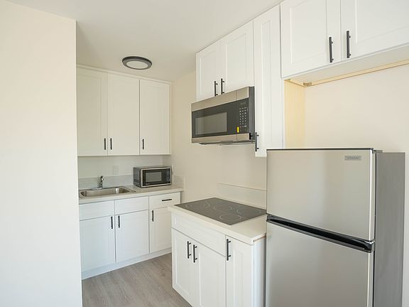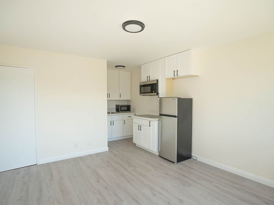 This studio apartment has been fully remodeled from top to bottom; The living room features new flooring, updated lighting, within a bright, open layout that creates a warm and inviting atmosphere. The kitchen stands out with an all-new stainless steel refrigerator and electric range, and is paired with new countertops and modern finishes that give the home a polished look. The bathroom has been completely updated with new tile work, vanity, and fixtures, bringing a clean and contemporary feel throughout. The unit is all-electric and equipped with air conditioning for year-round comfort. There is also a convenient community laundry room on-site for residents.