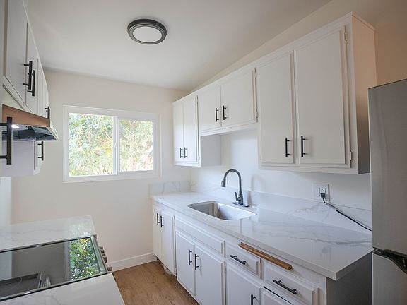 This 1 bedroom / 1 bathroom apartment has been fully remodeled from top to bottom; The living room features new flooring, updated lighting, within a bright, open layout that creates a warm and inviting atmosphere. The kitchen stands out with an all-new stainless steel refrigerator and electric range, and is paired with new countertops and modern finishes that give the home a polished look. The bathroom has been completely updated with new tile work, vanity, and fixtures, bringing a clean and contemporary feel throughout. The unit is all-electric and equipped with air conditioning for year-round comfort. There is also a convenient community laundry room on-site for residents.