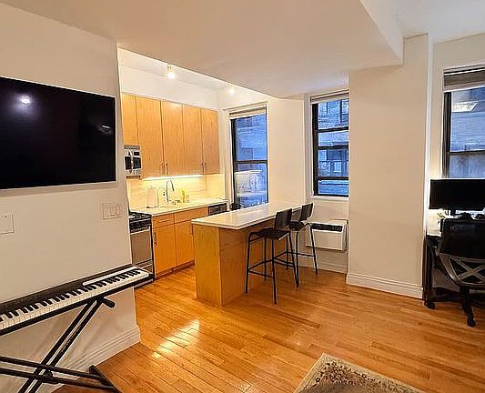 Welcome to this beautifully designed studio. This cozy studio combines style, function, and comfort in every square inch. Perfectly laid out, this space feels open and private with high ceilings and a thoughtful layout. Despite the unit being on the 1st floor of the unit, there are several steps up to the unit, allowing it to be 12 feet off the ground.