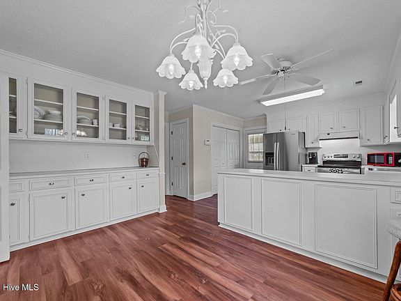 Formal living room with fireplace and built ins, formal dining room. Kitchen is open concept with room for kitchen table. Laundry closet in kitchen. Large carport with two storage closets. Fenced in rear patio and courtyard.