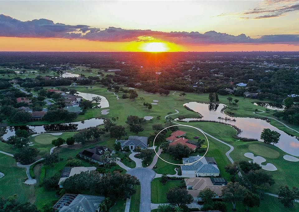 Set on a serene cul-de-sac within the prestigious Laurel Oak Estates, this custom-built residence captures the essence of Sarasota’s coveted golf-course lifestyle. Poised on nearly an acre with sweeping fairway and lake views, the home offers more than 5,100 square feet of beautifully designed living space enhanced by timeless architectural detail, modern functionality, and effortless indoor-outdoor flow. A private winding drive and manicured landscaping introduce the stately façade, where double entry doors open to a grand foyer with high ceilings and walls of large windows that fill the interiors with natural light. The spacious living and dining areas feature custom built-ins and millwork, with expansive sliders framing sunset views of the sparkling pool and golf course beyond. Perfect for entertaining, the gourmet kitchen combines rich wood cabinetry with granite countertops, a large center island, double ovens, built-in refrigerator, wet bar area, and casual dining nook overlooking the fairway. The adjoining family room offers a warm gathering space anchored by solid wood built-ins and a gas fireplace, with seamless access to the screened lanai for alfresco living. The primary suite is a private retreat with peaceful golf and water views, two custom walk-in closets, and a spa-inspired bath complete with soaking tub, separate shower, dual vanities, and private water closet. Three additional guest suites provide generous accommodations—two sharing a Jack-and-Jill layout, and one with a full en-suite bath—each thoughtfully designed for comfort and privacy. The theater room is equipped with platform seating, custom cabinetry, 120” screen, surround sound, remote-controlled lighting, and 4K projector. A true highlight of the home is the second-floor bonus suite, currently used as an art studio, featuring vaulted tongue-and-groove ceiling, built-in desks, a full bathroom, and an expansive balcony capturing unforgettable sunset vistas across the course. The screened outdoor living area defines the Florida lifestyle, showcasing a heated pool and spa, outdoor kitchen, and multiple seating areas for relaxing or entertaining. Mature landscaping, accent lighting, and the home’s ideal southwest exposure create a tranquil backdrop year-round. Additional features include plantation shutters, central vacuum, a three-car side-entry garage with golf-cart parking, and a whole-house solar system offering efficiency and peace of mind. Nestled behind the gates of Laurel Oak Country Club, residents enjoy access to 36 championship holes of golf, tennis and pickleball courts, a junior Olympic pool, fitness facilities, and a vibrant social calendar—all available with optional membership. Beyond the gates, you’re moments from Sarasota’s best amenities, including UTC Mall’s upscale shopping and dining, Nathan Benderson Park, and downtown Sarasota’s world-class arts, culture, and waterfront entertainment. Siesta Key and Lido Key beaches are within easy reach, completing the perfect blend of privacy, luxury, and convenience. With its exquisite craftsmanship, prime location, and inspiring golf-course vistas, this Laurel Oak Estates residence delivers the ideal balance of sophistication and relaxed Sarasota living—an exceptional opportunity for those seeking elegance within one of the region’s most prestigious gated communities.