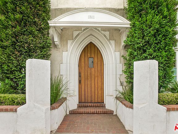The Four Gables, a boutique apartment building designed in1927 by Leland A. Bryant, is a 16- unit apt. building in the French Chateau style. The two-story townhome on 2nd and 3rd floor is totally upgraded w/ high quality materials & a look of the modern times including luxury fixtures/appliances in a stunning kitchen with SS appliances. The unit includes high ceilings, 20 ft living room w/decorative exposed beams, built-ins, hardwood floors, gothic arches, & original tiling. The unit features FULL CENTRAL AC , laundry in unit, & large living room & turret. New kitchen with SS Appliance. Hardwood and marble floors. One gated parking spot is included. The structure exhibits both gothic and Tudor elements or "Tudorbethan." Over the years, it was home to many involved in the entertainment industry. Architecturally, the building is Chateauesque in style. This imagery is conveyed using several Medieval-derived elements: a small corner tower, or tourelle, located at the northeast corner of the building; gabled dormers that pierce the roofline; and masonry chimneys, a 3-story iconic French Chateau. Available on 9/21.