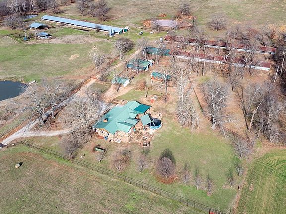 75 Acre working Cattle Farm. This incredible property features a main farm house 3 bed 2 bath, covered front porch, the back deck is 3 levels w/composite decking all covered, surrounded by beautiful rock work, cement bar & bbq area. Down 3 steps you have raised garden beds. The property has rural water & 4 wells, 2 are in use & the other 2 are ready for pumps. There are 4 stocked ponds, 35 acres of hay meadow & the rest pasture. The property has a guest cabin w/kitchenette & wheelchair accessible shower & covered porch. Two barns, one 30’ by 50’ used for RV storage & hay barn 40’ X 60’, 2 stall parking shed, 2 old chicken houses used for hay storage & another has a custom shop built in it w/cement floor, spray foam insulation & new metal roof. The shop measures 32’ X 60’ & the rest is covered storage. Pipe corral approx 50’ X 100’ with squeeze chute. There is a 3rd dwelling a rocked in 80’ by 16’ mobile home. Great views off both porches, you can catch the sunrise and the sunsets.
