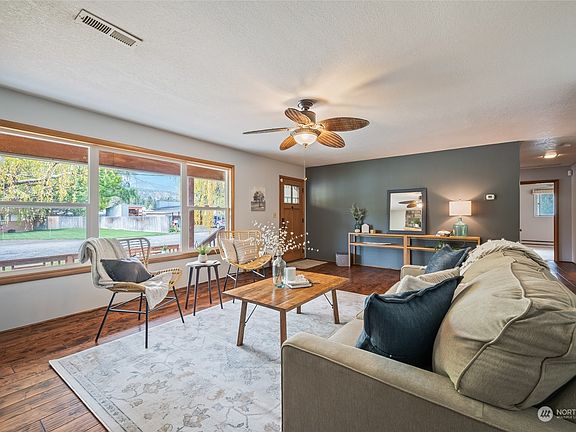 Score the ultimate lifestyle in Peshastin! Nestled among majestic old-growth willows, this mid-century haven promises serene sunsets and the nostalgic echoes of nearby baseball games. Party-ready with a spacious backyard, garden, and dual carport ready for gatherings, it's an entertainer's dream. Quick highway access, Leavenworth/Wenatchee bus routes, and just a stroll to Wenatchee River! The cherry on top? A separate, metered unit downstairs with its own entrance and parking — hello, rental income!