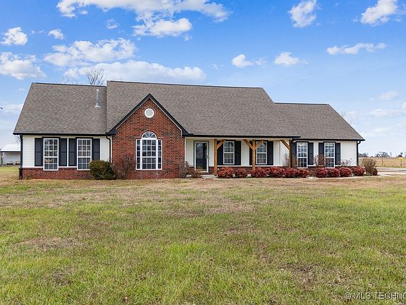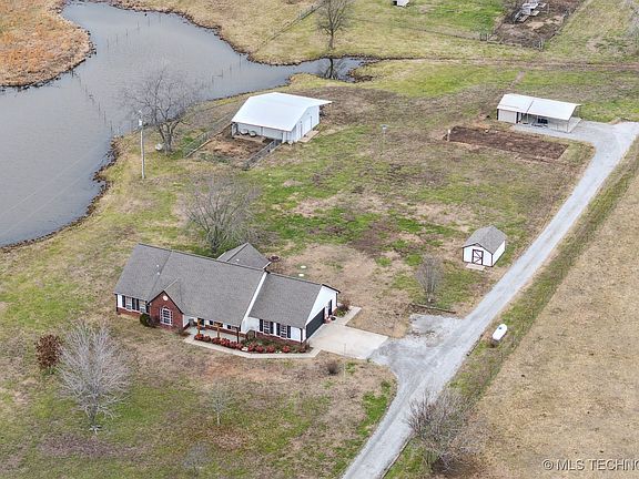 Pryor, OK Country Home For Sale on 10 Acres !! You are going to love this 3 bedroom 2 bath home built in 2004 on a beautiful 10 acres. The spacious living room leads to a separate dining area and an eat-in kitchen with a large island and plenty of cabinets, and all appliances are included; including the refrigerator! Right off the kitchen is an office space with 2 built-in desks that are perfect for remote work or a study! The master suite features two sinks and a large soaking tub. The large laundry room includes washer & dryer that stay with the home! Step outside and enjoy relaxing on the covered back porch that overlooks the pond. This 10 acre property includes a 24x30 barn with electric, concrete flooring, water and two overhangs. This Country Home on 10 acres for sale is move-in-ready and is perfect for anyone looking to be close to town while still enjoying country living. This property provides plenty of room for animals, gardening or just enjoying nature. It's conveniently located with blacktop roads leading to Hwy 69 and only 5 minutes to town, 45 minutes to Tulsa, and less than an hour to Arkansas. Don't miss out on your Country Home today!! Let's go take a look!