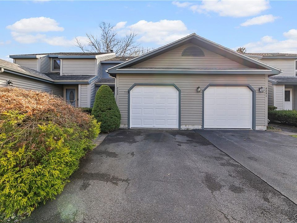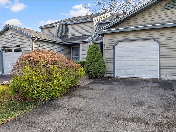 Welcome to 8253 Beehive Circle in the desirable Fairway East development! This well maintained, turnkey center unit townhome offers 2 nice sized bedrooms, 1.5 baths, and a partially finished basement with a bar! Walk into a bright, two-story open foyer with a skylight. You will be pleased with the fresh neutral colors throughout the home and maintenance free laminate flooring. Powder room is on your left then a few steps to the galley kitchen, with beautiful tile backsplash, pantry and newer stainless steel appliances. The kitchen opens to the living room and dining area through a convenient breakfast bar. Gas fireplace with a tile surround will be cozy for cold winter nights. Access the backyard through the living room onto a spacious deck with a gazebo. Head upstairs to an open area for seating and a large storage closet. The second bedroom is the first door on the right, again with a large closet and a lovely accent wall. The primary bedroom is a generous size with double closets is straight ahead. It has easy access to the primary bathroom. Head downstairs to the bright partially finished basement with newer ceramic tile flooring which adds 400 sq feet of additional living space for work and play! Enjoy the recently painted exterior and new garage door! Best part, NO HOA fee! This townhome offers comfort and convenience. Very close proximity to the Liverpool schools, and all of the shopping and restaurants on Route 31 and Route 57 has to offer. Easy access to Route 481 and close to the future Micron site. Schedule your showing today!