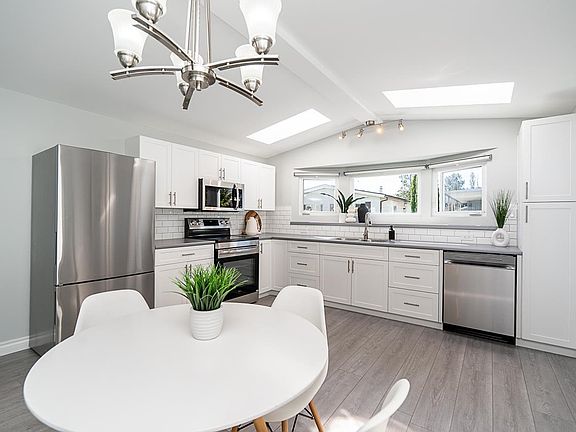 Vaulted ceilingsBright renovated kitchenNew stainless steel appliancesSkylight windowsVinyl flooringRenovated bathroomNewer washer and dryer