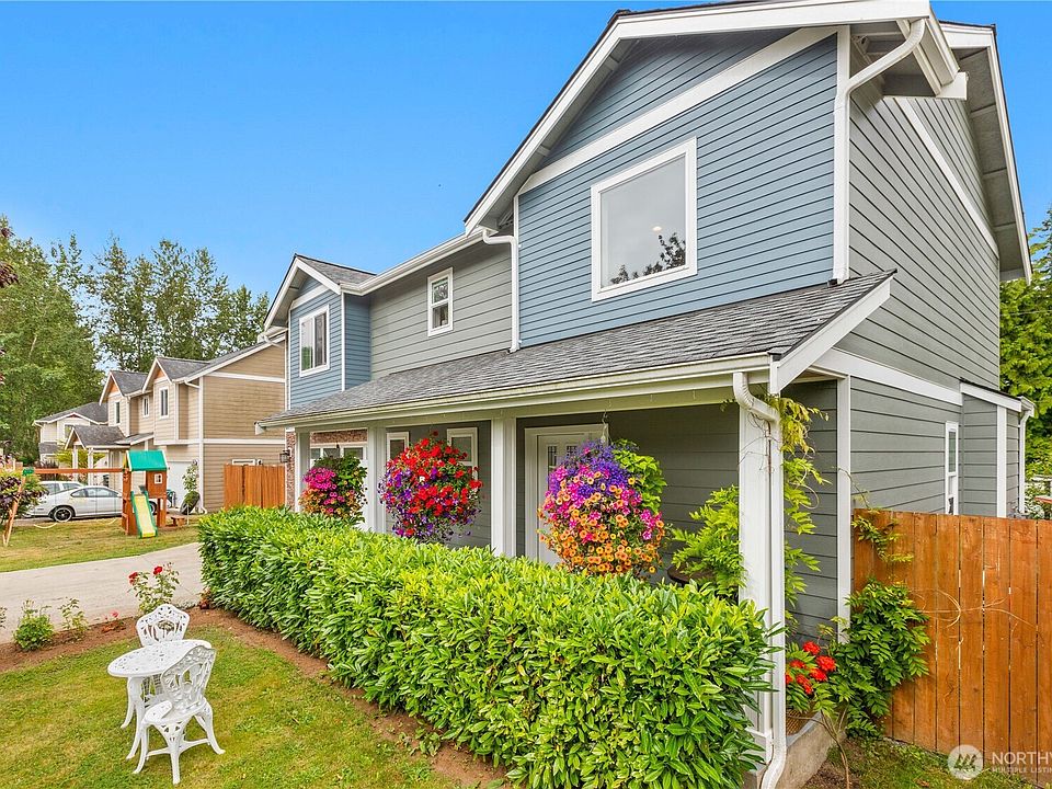 Step inside this beautifully maintained 4-bedroom, 2.5-bathroom home and enjoy nearly 2,000 sq ft of thoughtfully designed living space. The interior features a spacious open floor plan that seamlessly connects the living, dining, and kitchen areas — ideal for entertaining or everyday living. You'll love the marble countertops, stainless steel appliances, and cozy gas fireplace that anchors the main living area. Stylish finishes and an on-demand hot water system add comfort throughout. Outside, enjoy a private backyard oasis with a covered patio, vibrant garden, and lush yard filled with flowers and fruit trees. An attached garage adds convenience to this serene, move-in-ready retreat where comfort and design come together beautifully.