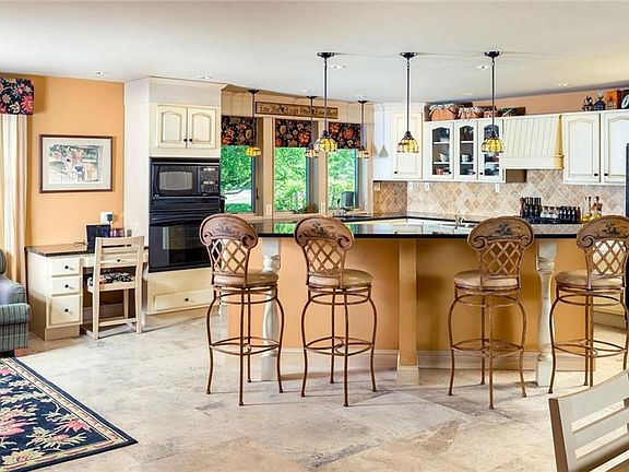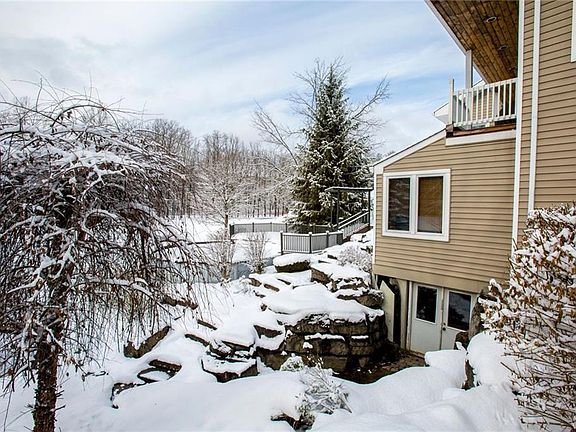 Spectacular modern farmhouse entirely rebuilt in 2002 creating the perfect blend of classic country charm & modern luxury! Nearly 20 acres, minutes from East Aurora & Orchard Park, nested in the rolling hills of ski country. Beautiful stone fireplace links generously sized kitchen and open concept family room. 3 first floor bedrooms and 2 upstairs ensuites including a luxurious master with multi-jet shower and his/hers closets! Hardwood and travertine floors with radiant heat throughout. French doors open to sunroom showcasing stunning views of the property! Spacious separate entrance in-law suite/guest quarters/rental apt with full kitchen, 2 beds, full bath, laundry. Hike, hunt, cycle, snowmobile, ski! Perfect for entertaining and the outdoor sports enthusiast! Incredible value @$399k!