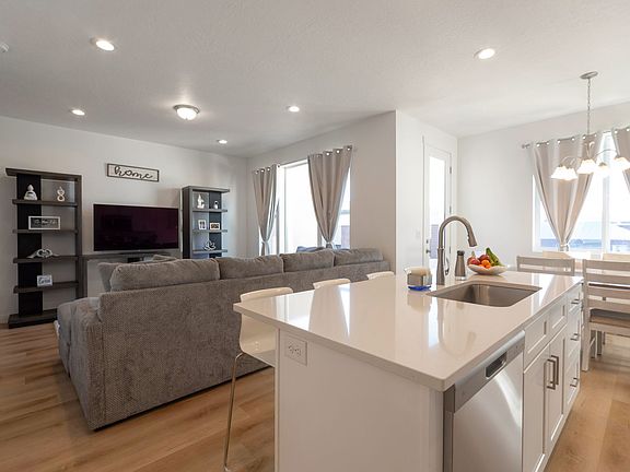 This stunning new listing in Magna, UT, was thoughtfully designed and beautifully maintained, featuring sparkling white quartz countertops, stainless steel appliances, and a vaulted ceiling that fills the living space with light and openness. Enjoy year-round comfort with dual-zone heating and cooling, fire & sound guard insulation, and a tankless water heater for endless hot water. The home offers abundant storage and cabinet space, plus smart features like a MyQ garage system for convenience and security. Outside, you'll love the quiet neighborhood and easy access to a community park complete with picnic tables and a grill-perfect for gatherings.
