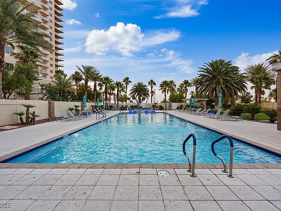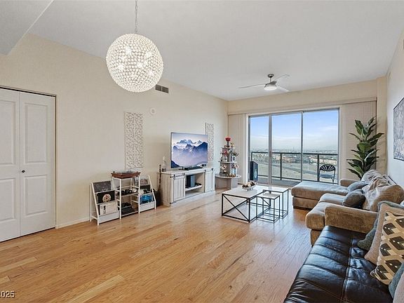 This exquisite 2-bed, 2-bath high-rise unit is located on the 19th floor, offering breathtaking views of the iconic Las Vegas Strip and the surrounding mountains. Step into an expansive and light-filled open-concept living area, perfect for entertaining or relaxing after a day in the dynamic city below. Large floor-to-ceiling windows allow for natural light to flood the space and provide unparalleled panoramic views. The modern kitchen is equipped with stainless steel appliances and granite countertops. The spacious primary suite features a walk-in closet and an en-suite bathroom. Step outside onto your private terrace, where you can unwind while taking in the stunning sunset over the Strip and the tranquil mountain skyline. This outdoor space is perfect for morning coffee or evening gatherings. Residents enjoy access to a state-of-the-art fitness center, Spacious pool area, beautifully landscaped grounds, and 24-hour concierge service enhance your High Rise living experience.