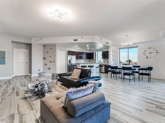 Step into luxury at One Las Vegas. Enjoy breathtaking panoramic views of the Strip, City and Mountains from this incredible corner unit with dual oversized balconies. Open floor plan, soaring 10' ceilings, custom lighting, sleek finishes, and an electric fireplace. Designer details elevate every room, his & her closets. Indulge in resort-style living amenities 24/7, heated pools, spa, sauna, massage room, BBQ, Cabanas, Club room/Party room, Tennis Courts, Mini Market, complementary coffee, Full social calendar, 2-story fitness center, dog parks, dry cleaning service, Cox high speed internet/cable package, you only pay electricity, Includes temperature controlled storage unit, 2 parking spaces and EV Charger in the building. Just minutes from Allegiant Stadium, airport, dining, and entertainment. Live elevated at One Las Vegas. Seller offering a 2-1 rate buydown, creating an affordable opportunity for buyers to enjoy reduced monthly payments during the first two years of ownership.