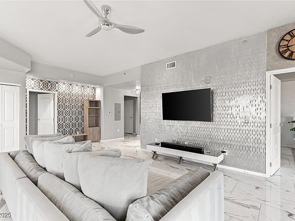 Experience the ultimate in high-rise living with this stunning highly upgraded 2-bedroom + den, 3-bath corner unit boasting unmatched views of the Las Vegas Strip, breathtaking sunsets, and majestic mountains from two private balconies.