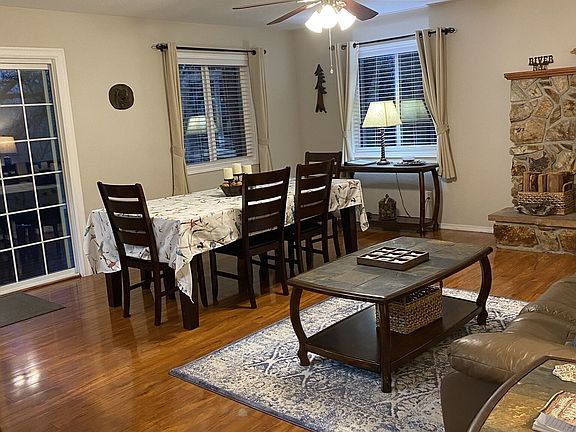Recently remodeled and tastefully furnished, The River House is designed for your perfect getaway. Step outside to the expansive 16x40 ft deck overlooking the river, where you can fire up the gas grill for a delightful cookout. Enjoy family fun at the horseshoe pit with a stunning river view, or explore the vast grassy yard perfect for tossing a football, playing flashlight tag, or practicing your golf swing.