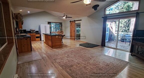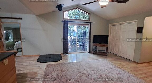 Welcome to your new home in the heart of the redwoods with peace, sunshine and quiet- close proximity to stores and entertainment. This one-bedroom, one-bathroom apartment offers a perfect blend of comfort and modernity. The apartment features hardwood floors throughout, adding a touch of elegance and warmth. The state-of-the-art kitchen is equipped with modern appliances and a kitchen island with a breakfast bar, perfect for those who love to cook and entertain. All utilities and Wi-Fi are included, making your stay hassle-free. The apartment also boasts a deck off the bedroom and living room, offering stunning forest views and a serene setting tucked in the hill. The state-of-the-art efficient direct vent heating and ceiling fans ensures your comfort during the colder months and warmer Summers. Experience the perfect blend of modern living and nature's tranquility in this beautiful sun-drenched apartment. There is also additional storage(1/3rd of a workshop/art studio) available for rent for an additional $100/month.