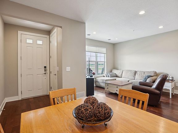 Introducing 8256 Jonquil Lane N! This remarkable townhouse offers breathtaking views of Maple Grove's Central Park Lake from its inviting covered front porch. With 3 bedrooms and 3 bathrooms, this home spans across 1410 finished square feet. Recessed lighting throughout, engineered hardwood flooring on main level and owner’s suite. The beautiful Chef's kitchen features enameled white cabinetry, granite countertops, and stainless-steel appliances. A half bath with a barn door completes the main level. Upper-level features 3 bedrooms, including a private owner's 3/4 bath with a walk-in closet, full hall bath, laundry area, and a loft space that grants access to a spacious deck off the back of the home. 2-car garage with a heated storage area and an 8-car parking lot for guests conveniently located behind the townhome. Situated within walking distance of shopping and dining options at Arbor Lakes, this property is truly a must-see!