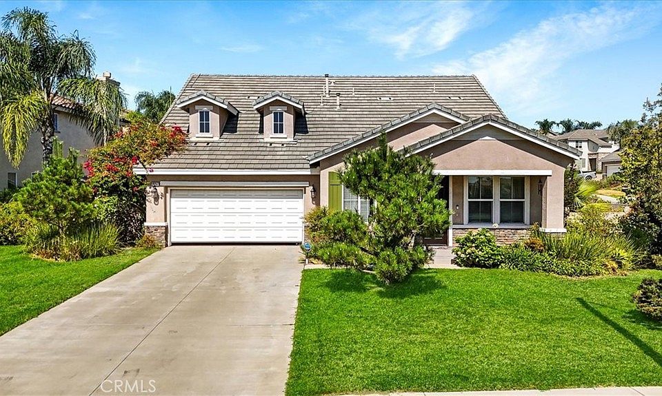 Incredible opportunity to own this amazing 4BR 4Bath home located in a quiet 0.26 acre corner lot in the highly desirable Orangecrest neighborhood. The master suite is on the main floor with separate his and hers walk in closet and an enhanced ensuite bath with dual sink vanity and a separate bath tub and shower. The other 2 bedrooms and 2 bathrooms are also on the main floor. The spacious kitchen boasts a new stainless steel double oven, a new stove top, a large island, granite counters and plenty of storage spaces. Upstairs you will find a full suite, one bedroom, one full bath, a large loft and a built in desk with built in cabinets; perfect as a guest suite. Crown molding all throughout adds architectural character to this home. Ceiling fans in all 4 bedrooms and family room which features dual control light switches in the main hallway. Indoor laundry with sink is located on the main floor with ample cabinets for storage and easy access to the attached 2-car garage. Relax in your own backyard with a gazebo and a cascading waterfall feature. YES, the home comes with 16-panel solar. Conveniently located in close proximity to top rated schools, parks, library, shopping, dining and entertainment. Close to freeway access.