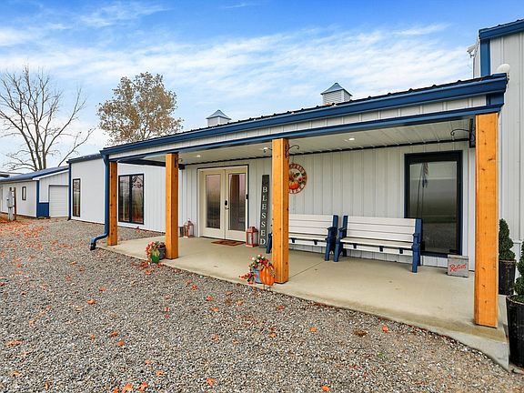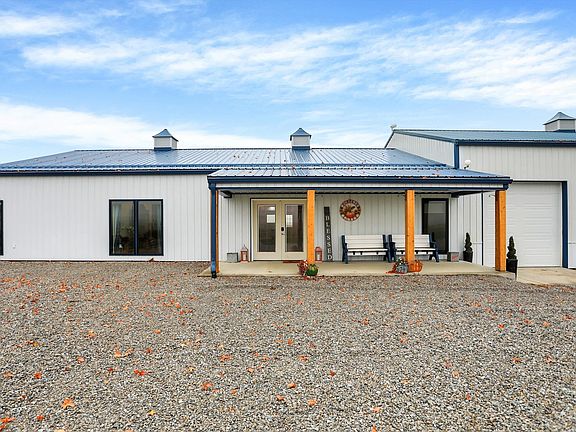 This exceptional 2-year-old barndominium offers modern country living on 5 private acres just a few miles from I-70, giving you peaceful rural surroundings with only a 20-minute drive to Indianapolis. The 2,240 sq ft interior features 3 bedrooms and 2 full bathrooms, highlighted by a spacious kitchen with a striking 4' x 10' quartz island and stainless steel appliances. Radiant heated floors and upgraded insulation ensure outstanding energy efficiency throughout the home. The luxurious primary suite includes a stunning European-style wet room, and the entire home is ADA compliant for ease of accessibility. Ideal for hobbyists or professionals, the property includes 2,400 sq ft of attached garage space-1,200 sq ft climate-controlled and 1,200 sq ft cold storage-as well as an additional detached garage. This rare offering blends comfort, quality, and convenience in a highly desirable location.