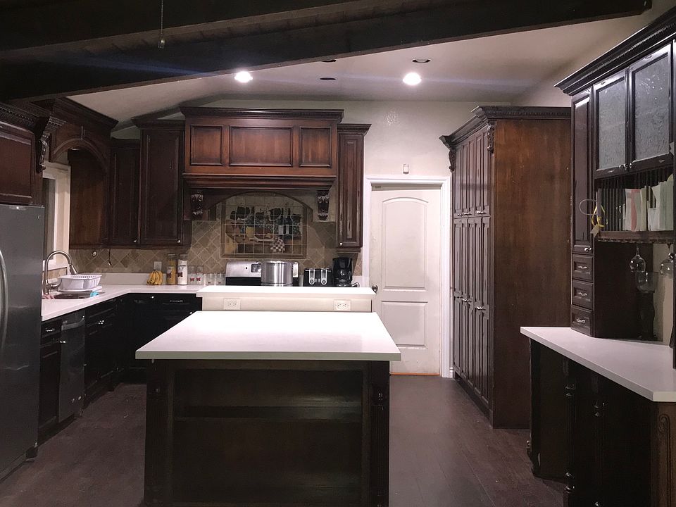 Large Remodeled 4 bedroom 3 bathroom house with 2 extra bonus rooms with Closets can be use as bedrooms or offices. 2 large Master bedrooms with bathrooms. 1 Master bedroom used to be the garage and was converted into a in-law suite, as a large closet, walk in shower with full bathroom, an livingroom space and laundry room, all is permitted. Other Master bedroom has a large bathroom with jetted tub and walk in shower, separate toilet space with door, large closet with shoe racks, Shelves, and lots of hang room for clothes. There is also another large Laundry room with cabinets and sink with counter space next to main bedrooms and main bathroom. 2 other main bedrooms are good size with large closets. Large open living room open to kitchen dinning space with brick fire place. Yard has lots of concrete that runs down the driveway to half of the back yard and back yard has permitted posts already for patio cover installation. There is also a permitted slab of concrete ready to build a garage or even another house. Bring your Animals, Toys, Cars, Rv, Boats whatever you have there is plenty of room. There is 7 large building in back yard can be used for Storage rooms or whatever you can think of.