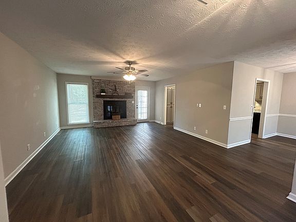 Large fenced backyardHallway kitchenBlack appliancesTile in the bathroomsLong drivewaySpacious great roomFormal dining room
