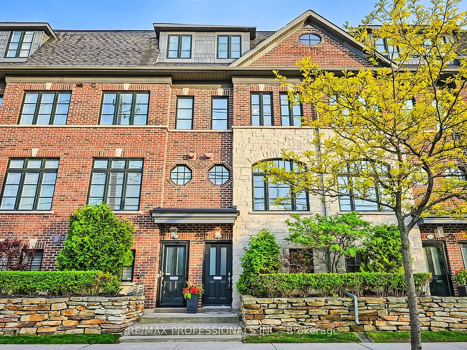 Welcome to this beautifully maintained 3+1 bedroom, 3-bathroom townhome offering over 2,000 sq ft of thoughtfully designed living space. Bright and airy with an open-concept layout, this home features 9 ceilings, large windows, and a cozy fireplace that adds warmth and charm to the main floor. The modern kitchen is perfect for casual meals or entertaining, showcasing granite countertops, stainless steel appliances, gas range, and a spacious island with breakfast bar seating. Step outside to your large deck equipped with a gas BBQ hookupperfect for summer gatherings. Upstairs you will find two well-proportioned bedrooms, a full bathroom, and the convenience of a dedicated laundry area. Above, the primary bedroom is a private retreat occupying the entire top floorspanning over 600 sq ft with both north and south-facing views. This expansive space features a walk-in closet, a luxurious 5-piece ensuite, and a walkout balcony. The lower level offers added flexibility with a bonus room ideal for a home office, studio, or guest space, along with an additional powder room for convenience. A rare double car garage with ample storage and workspace adds to the appeal. Ideally located in vibrant Mimico, you're just minutes from local shops, restaurants, transit, the QEW, and the Mimico GO Stationmaking it easy to access downtown Toronto and beyond.