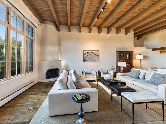 Built in 1983-84 by Grover/Ivey, nestled in the cherished Santa Fe Eastside, this home sits on a very private 1.045 acre parcel just off the Old Santa Fe Trail with magnificent East and West views of Sun & Moon Mountains as well as the Jemez Range, all but assuring the daily drama of powerful sunrise and sunset views.