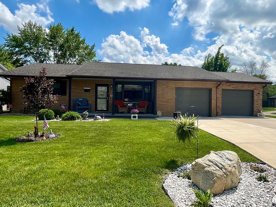 Wonderful corner lot home just steps from all the dining and shopping Peru has to offer. Recently renovated Kitchen with Corean solid stone countertops, and custom cabinets are gorgeous! This 3-bedroom home was converted to a 2-bedroom for a main level laundry room. Home is immaculately clean and maintained. Updates include furnace, central air, water softener and a Minie split in 2017. Kitchen reno and all new doors 2020. Built a new attached garage to make a 2 car in 2022. Both Garages have TRS high epoxy coating for easy cleaning. New flooring in den, living room, hallway and bathroom in 2024.Water heater replaced in 2023.Come take a look at this wonderful oasis with a new Royal Raindrop Crab Tree in the front and a State Street Maple out back. Front porch out front and a private deck off the family room. Open concept with modern touches. Cathedral ceilings, Tray ceilings, vaulted ceilings, and a skylight. Don't miss this one!
