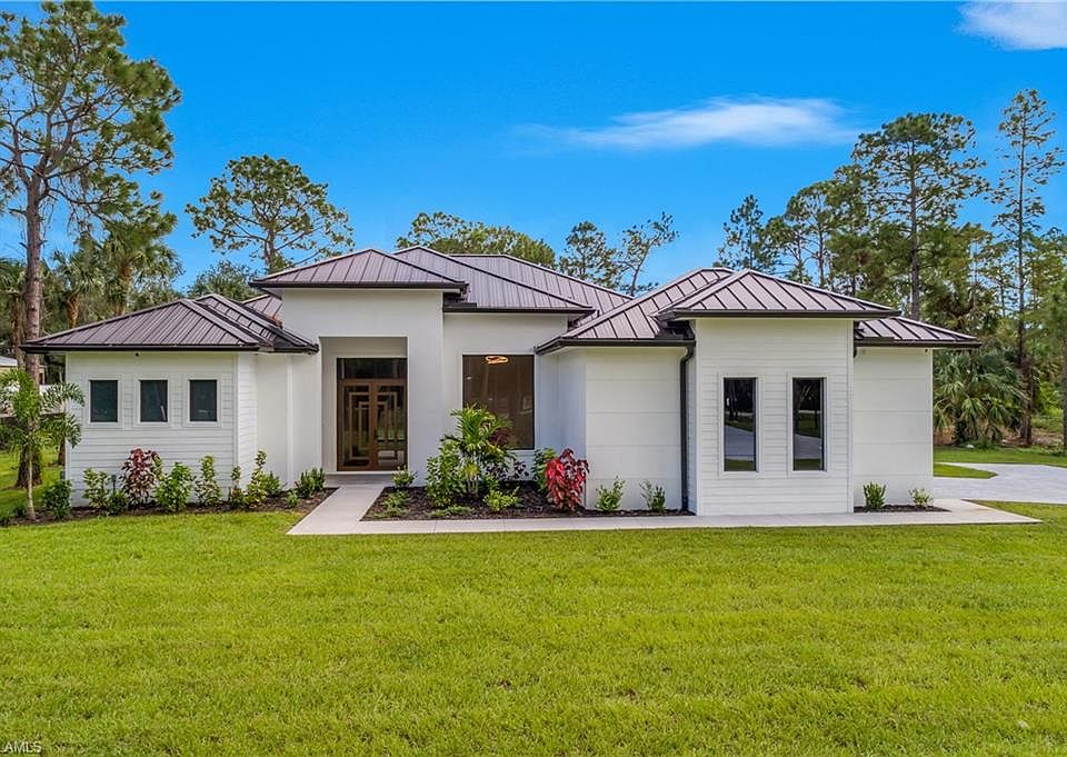 PICTURES ARE OF A SIMILAR HOME. Welcome to your dream home nestled on 2.5 acres of lush property! This stunning house spans 2392 square feet under air, with a grand total of 3383 square feet, 2-car garage. Step inside and discover the luxury within. With 3 bedrooms plus an office and 3 modern bathrooms, each equipped with stylish mirrors and integrated lighting, comfort meets sophistication. Walking closets with built-in cabinets ensure ample storage, complemented by the entire house's spray foam insulation for energy efficiency. The house features 2 AC units to keep you cool year-round, while impact-resistant windows and doors provide security and peace of mind. Marvel at the brown metal roof, promising durability and longevity. The integrated reverse osmosis system ensures pristine water quality throughout, enhancing daily living. Relaxation awaits in the living room and master bedroom. The solid wood kitchen cabinets offer both beauty and functionality, perfect for culinary endeavors. Step outside to your private oasis, the lanai features a summer kitchen equipped with everything you will need to keep your guests entertained.