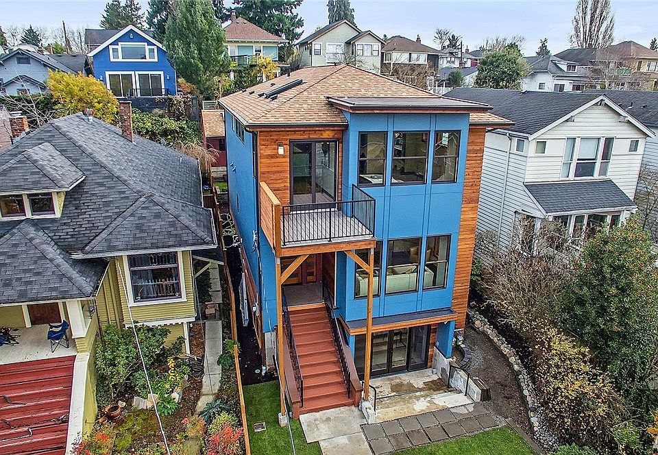 Contemporary styling re-imagined from the soul of the original 1906 Victorian. Sits well above the street for privacy & exceptional westerly views from all levels. Centrally located in Madrona with a walk score of 88. Easy stroll to the lake or burgeoning CD. Large windows and skylights illuminate rich finishes & custom details throughout. Luxurious main house above, spacious turnkey ADU income apartment below. Smart home features. Detached garage with alley access & 2 off street parking spots.