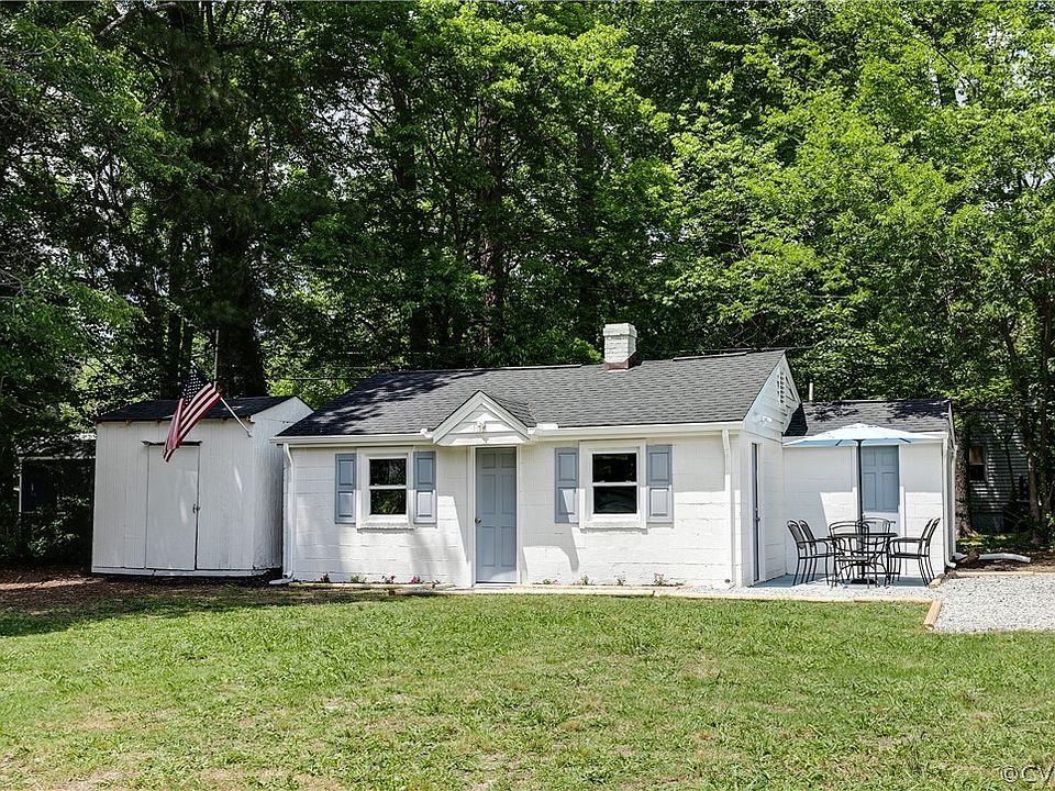 Discover the perfect blend of modern upgrades and cozy charm in this beautifully remodeled home, set on a rare double lot totaling 0.3 acres. Experience the ease and comfort of one-level living in a fully upgraded home featuring a brand-new roof, water heater, freshly-painted interior and exterior, and LVP flooring throughout. The brand new, energy-efficient mini-split systems provide ideal heating and cooling, enhancing comfort while saving on energy costs. Step inside to find a contemporary kitchen adorned with marble counters, stainless steel appliances, and tasteful subway tile backsplash. Equipped with additional counter space, cabinetry, and seating, this modern kitchen offers style and functionality. The fully-remodeled, full bath offers a spa-like experience, while an oversized detached shed and separate laundry/utility room (with baseboard heating), add convenience and additional storage. Step right outside the kitchen to entertain on the quaint patio, or simply relax after a long day. The location is unbeatable – less than a mile to interstates, schools, grocery stores, dining options, YMCA, and more.