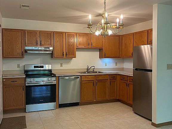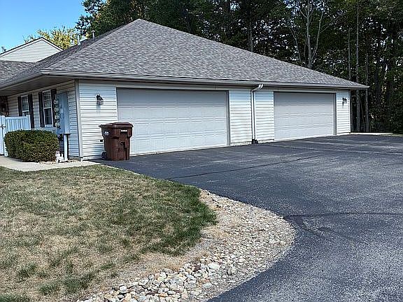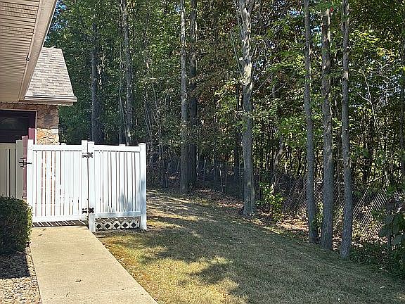 This spotless, move-in ready condo is available for immediate possession. It has been freshly painted and deep cleaned throughout. There is an open concept kitchen, dining area, and living room with a vaulted ceiling. The kitchen comes equipped with new stainless steel appliances including a stove, dishwasher and refrigerator. There is also a garbage disposal. The large windows face a wooded area giving privacy and a view of local wildlife. The private fenced in patio is also located on the wooded side of the condo. The master bedroom has a walk-in closet and full bath that can be closed off from the rest of the living area. The second bedroom is located directly across the hall from the second bathroom which has an attached laundry room that includes a washer, dryer, and utility sink. There is a spacious two car garage with automatic door opener and lots of space for storage.