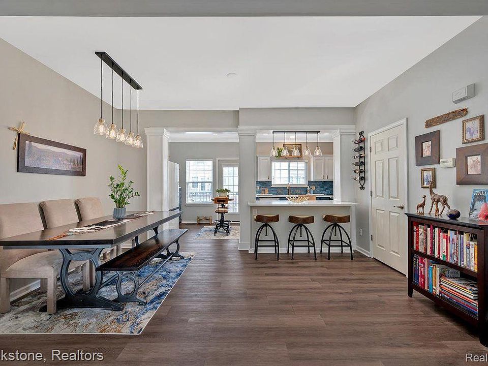 Retreat to your townhouse nestled in a mature green space. The welcoming covered porch greets you with views of undeveloped wetland for peace & tranquility. Inside you'll be blown away by the updated kitchen (2023) & oversized peninsula equipped with extra outlets leading to the open living & dining spaces. Featuring gorgeous new paint, trim, Quartz counters, stylish brushed brass hardware & faucets, tile backsplash imported from Italy with custom Pewabic Tile accents add character & historic significance, granite sink with new disposal, new light fixtures & recessed lighting (all dimmable), new sub-floor & luxury vinyl plank flooring. All new Samsung Bespoke smart appliances included with convection oven/air-fryer! Bespoke appliances round out the designer kitchen & provide customization. Off the kitchen eat-in space is an elegant sideboard with Quartz countertop; included! New low maintenance Trex balcony (2023) with retractable screen for breezy indoor & outdoor entertaining. The main floor provides a convenient half bath with Quartz counters, tile imported from Italy, new paint, flooring, brass faucet & hardware, mirror & a dual-flush DELTA toilet for tasteful continuity. Upstairs you'll find motion sensing lights & custom blinds. Both upstairs bedrooms are fitted with large walk-in closets. Additional closet in the hallway with separate upstairs laundry area. All closets feature additional shelving to maximize storage. The primary bathroom has a separate shower/water room with an oversized vanity, for ease of use. The third bedroom, on the first floor, allows for further opportunities as a private guest space, office, playroom, gym, etc. The 2 car attached garage is freshly painted. Wonderfully maintained grounds include community gazebos, playground & a scenic trail that winds along the Fenton Mill Pond (kayak launch only 2 minutes away)! Sidewalks lead to downtown Fenton with excellent shopping, dining & parks. Info deemed reliable but not guaranteed. Buyer/B.A. to verify info. Video surveillance present.