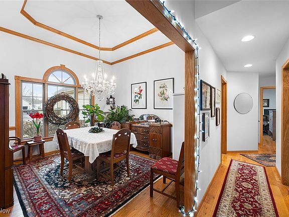 Welcome home to this stunning sprawling ranch, offering one-floor living at its finest. Be wowed by soaring vaulted ceilings and a floor to ceiling brick fireplace. The chef's kitchen features granite countertops, custom KraftMaid cabinetry, and sleek KitchenAid black stainless-steel appliances. A separate dining room provides the perfect gathering space. The spacious master suite boasts vaulted ceilings, a walk-in closet, and a private bath. Two additional bedrooms, another full bath, and a sprawling basement offer plenty of space. Outside, enjoy a fully fenced yard with a large entertainment deck. Premium Anderson windows throughout complete this exceptional home. Don't miss your chance to make it yours!