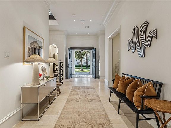Santa Barbara–inspired home in the heart of Hunters Creek offering timeless architecture and elegant livability. The inviting front porch opens to light-filled interiors with 12-foot ceilings and seamless flow between formal and casual spaces. The kitchen is outfitted with Sub-Zero and Wolf appliances, a breakfast bar with seating, and connects to the bar for effortless entertaining. Five bedrooms each include an ensuite bath and walk-in closet. A private office is located near the first-floor primary suite overlooking the backyard. Upstairs includes a spacious game room with a powder bath and balcony, plus four guest suites. Two staircases and elevator capability provide convenience throughout. Outdoor living includes a patio that spans the back of the house with a grill, pool bath, pool with spa, generous patio, and landscaped yard. Ample parking with a circle drive, porte cochere, and oversized two-car garage.