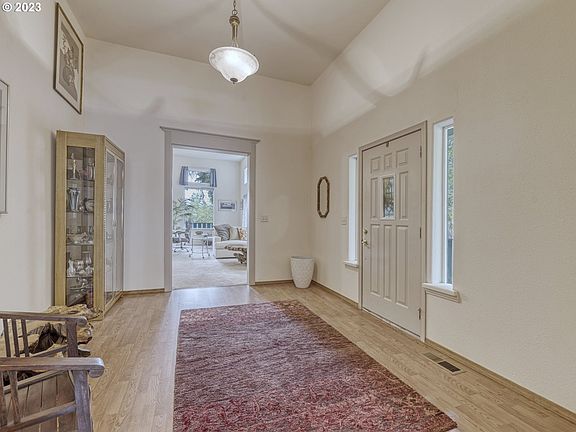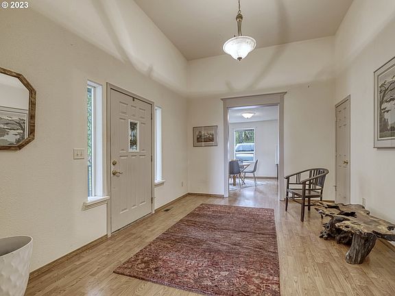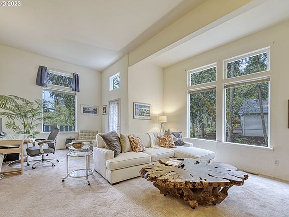 Enjoy quiet privacy at the edge of town in southeast Eugene. Situated at the end of a quiet cul-de-sac, this lovely home offers a nearly 1/2 acre tranquil backyard, detached 2 car garage with breezeway to the kitchen. The open floorplan with high windows let in lot of natural light to the large, versatile living room. A formal dining area gives room to entertain. The unfinished basement with its own entrance has so much potential! Office? ADU? You name it. Close to hiking trails, the raptor center, all you love in SE Eugene. Don't miss!