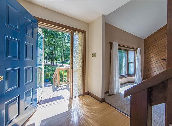 This 3-bedroom, 2.5-bath contemporary home is freshly painted, with new carpet & gorgeous bamboo floors. Great room with vaulted ceiling, large skylight, dramatic accent wall & wood-burning fireplace. Kitchen is updated, offers plenty of storage, black & stainless appliances, and a pantry. Adjoining dining room will seat your largest dinner parties. There is a spacious family room at the rear of the home and double sliding glass doors to the large deck & backyard. An updated half bath & large storage/laundry/mud room completes the first floor. Upstairs is a spacious master bedroom with double closets, a full updated en suite with double sinks & walk-in shower, and private access to a balcony overlooking the great room. There are 2 more nice-sized bedrooms with good closets & the updated hall bath. New heat pump & skylights in 2012. New roof in 2015. New hot water heater in 2017. Lighting & updates reflect the home's contemporary style. The house is set well-back from the road at the end of a cul-de-sac. There is a large gravel lot with room for a dozen cars - perfect storage for a boat, RV or trailer. Great schools and 10 minutes to shopping & dining at Chesterfield Town Center.
