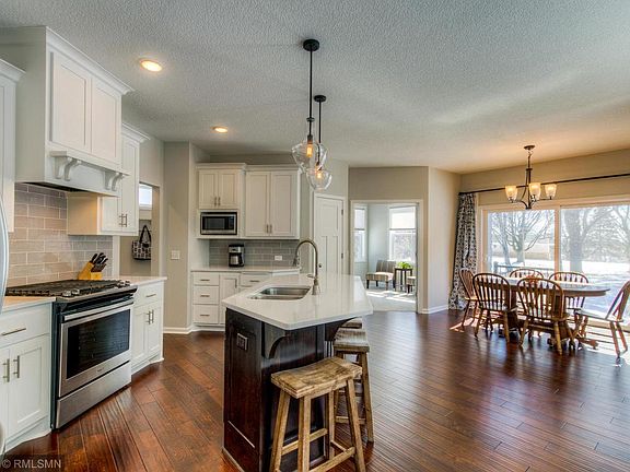 Gorgeous 2 story home is located in Gramsie Woods in Shoreview & the Mounds View school district. This home has 5 bedrooms, 4 of those on one level. The beautiful kitchen has stainless steel appliances, a breakfast bar, a walk-in pantry and plenty of storage. The main floor has a bright, open layout with a cozy stone, gas fireplace. The master bedroom has a large walk-in closet and a full, private bathroom with a separate tub & shower. The lower level is fully finished with the 5th bedroom and a 3/4 bathroom. This home has high efficiency zoned HVAC equipment. The large backyard is perfect for entertaining. Make this stunning home yours!