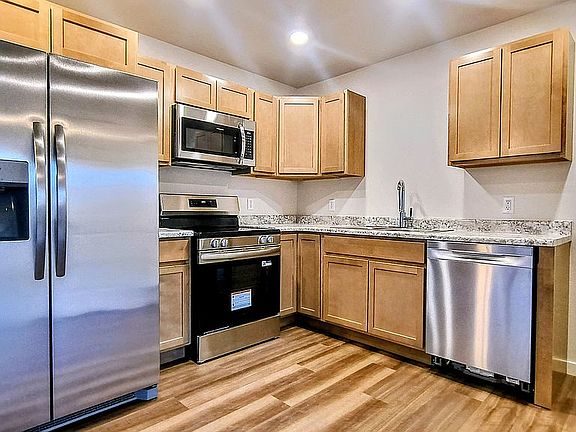 Vaulted ceilingLuxury vinyl plank floorsCovered back porchStainless steel kitchen appliances