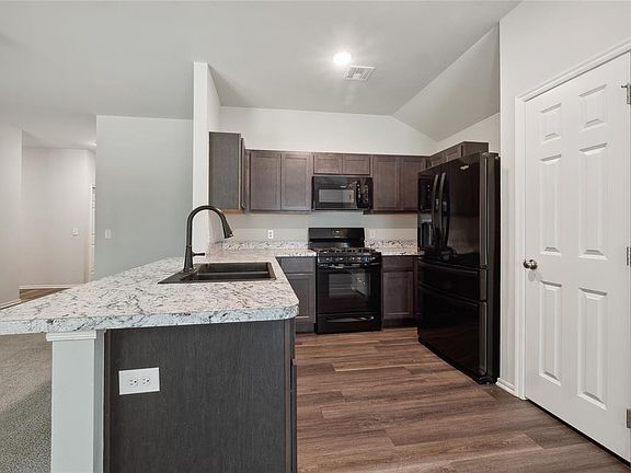 Located at the back of the Twin Lakes Estates on a cul-de-sac. Home built in 2022. Fully wrapped gutters. Covered porch and back patio. Newer vinyl wood look flooring. Kitchen with black appliances - gas range, microwave, refrigerator, & pantry. Wired for security system and Ring doorbell. Master bedroom with master bath and large walk-in closet. Large laundry room with open shelving. Main water shut off in the Southeast bedroom closet. Instant hot water heater. Full privacy fenced backyard. Noble schools (within 2 miles). OEC electric & fiber. ONG for gas. Water and trash City of Noble. Within walking distance from Noble splash pad & park. 6 miles to Oklahoma University (OU)! 5 miles to Hwy 9. Cleveland county. Broker/Owner